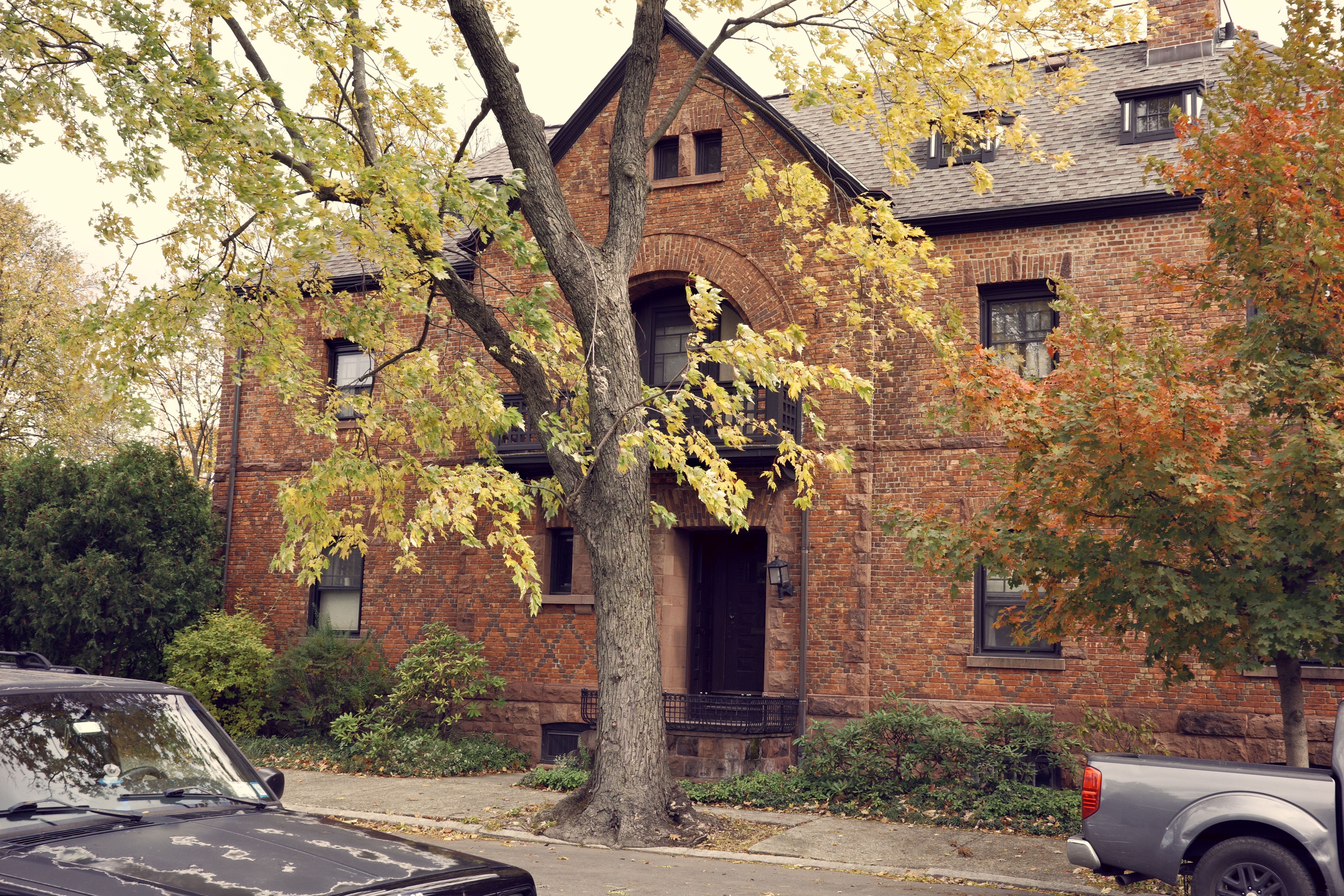 At the very outset of its run to the Hudson, State Street offers up one of its many architectural gems. 503 State Street, designed and built in 1886 by Walter Dickson, is a unique and lovely house. Romanesque qualities steer it away from ostentatiousness. The arched second story balcony sits above a deeply recessed doorway and two slit-windows. These features paired with the tall tree that obscures much of the house give it a sense of seclusion despite its location in the city. The eclectic brickwork offers a subtle enhancement to an otherwise largely proportional design.
