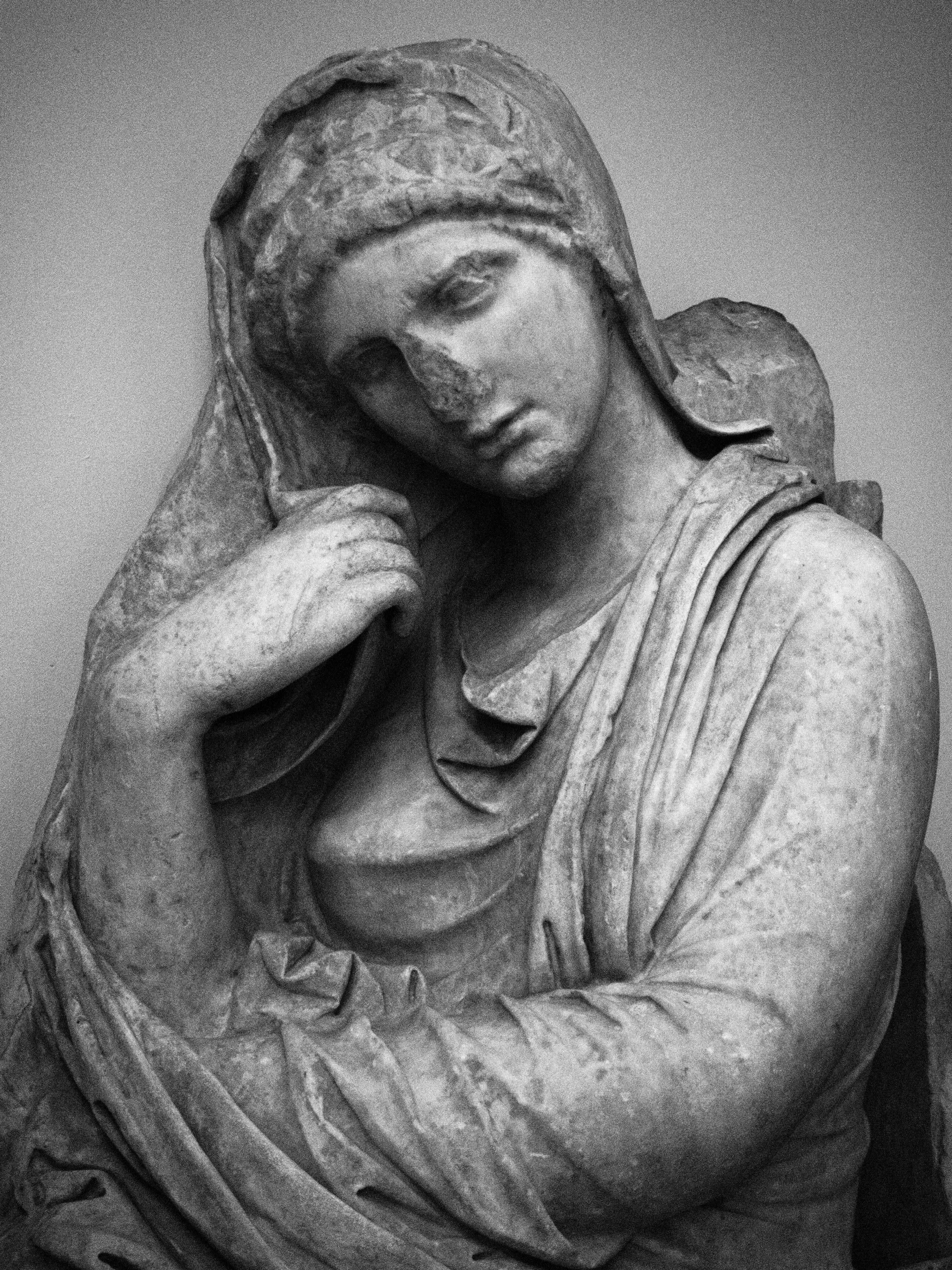 Out of all the Classic treasures in New York, this grave stele is perhaps the most human. Carved virtually in the round, sublime is the only word that readily comes to mind to describe it. Who was this woman? She must have been well respected and loved to deserve a work of this magnitude. Whoever it was who solicited this work made sure to find a master to complete the task. Her grace is made material with a slight bend of the wrist and her modesty is kept in tact under her shawl. She leans forward not to talk, but to listen. This rock beckons you closer. She must have been a kind woman - stately in her matriarchy.