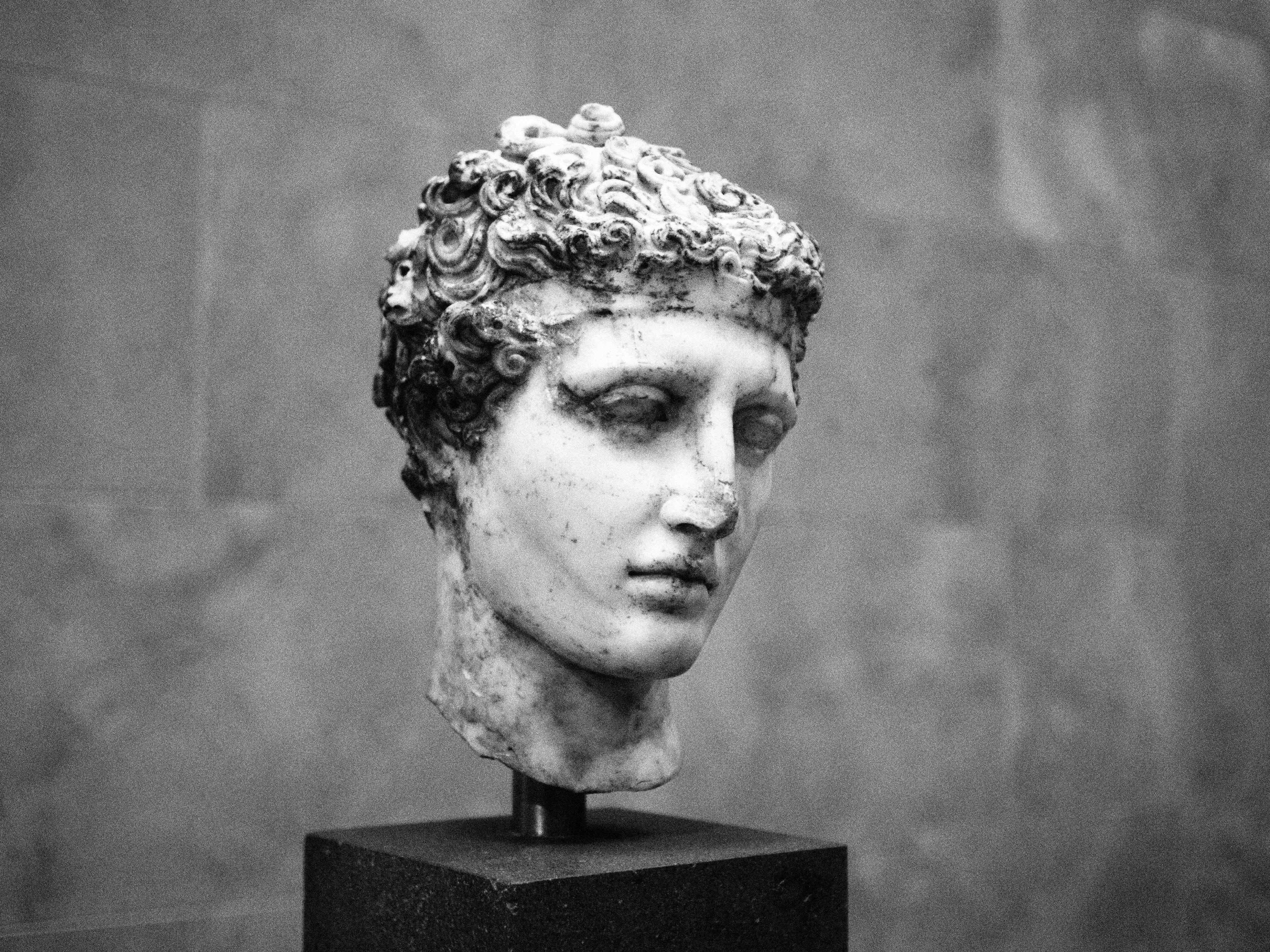 Roman copy of a Greek head. The fillet around his forehead tells of the boys athletic victories.