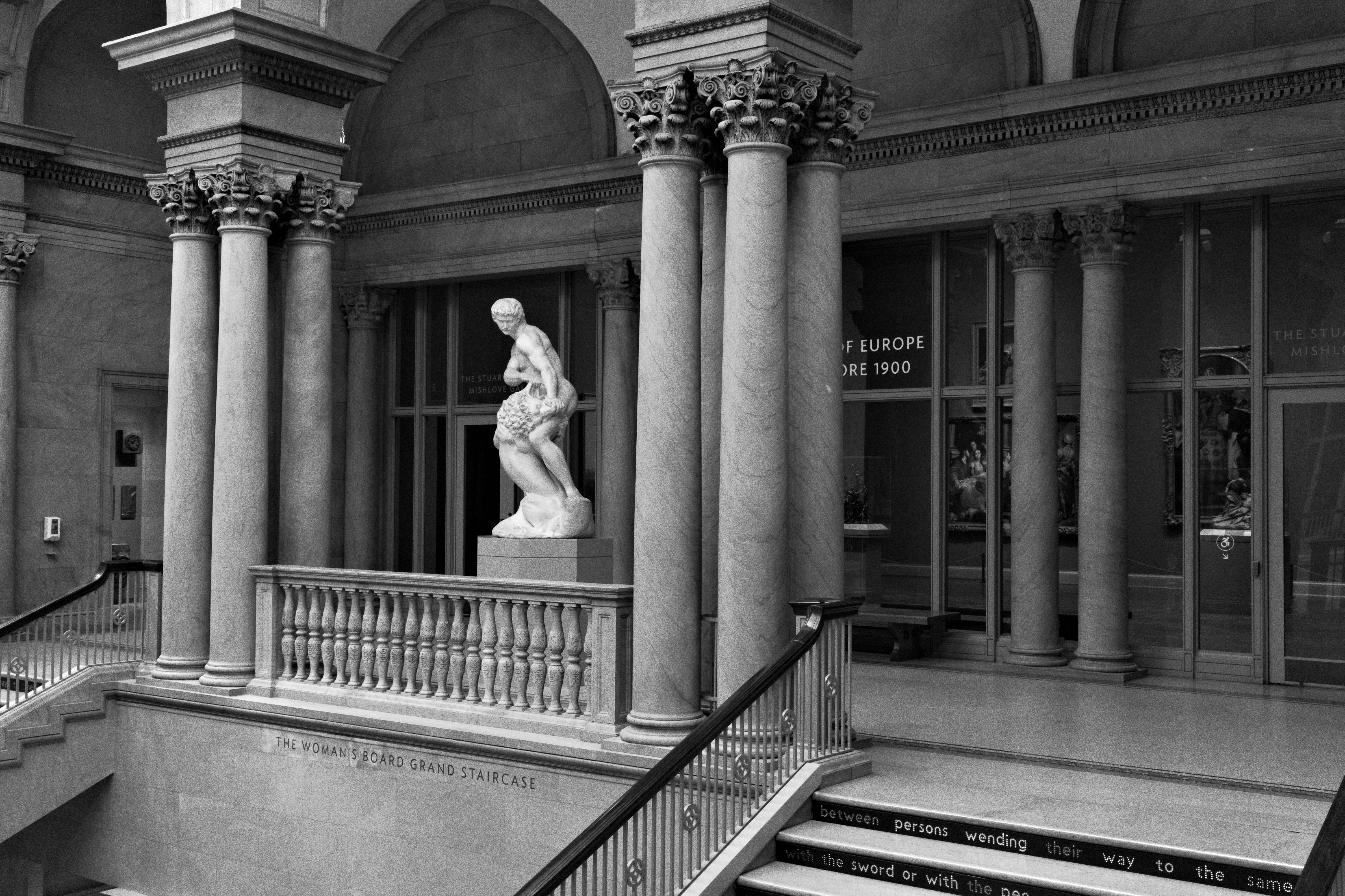 We are lucky that over the millenia Greek sculpture has had its gaudy polychrome paint washed away. Monotone is a good look even for a dirty Chicago street.