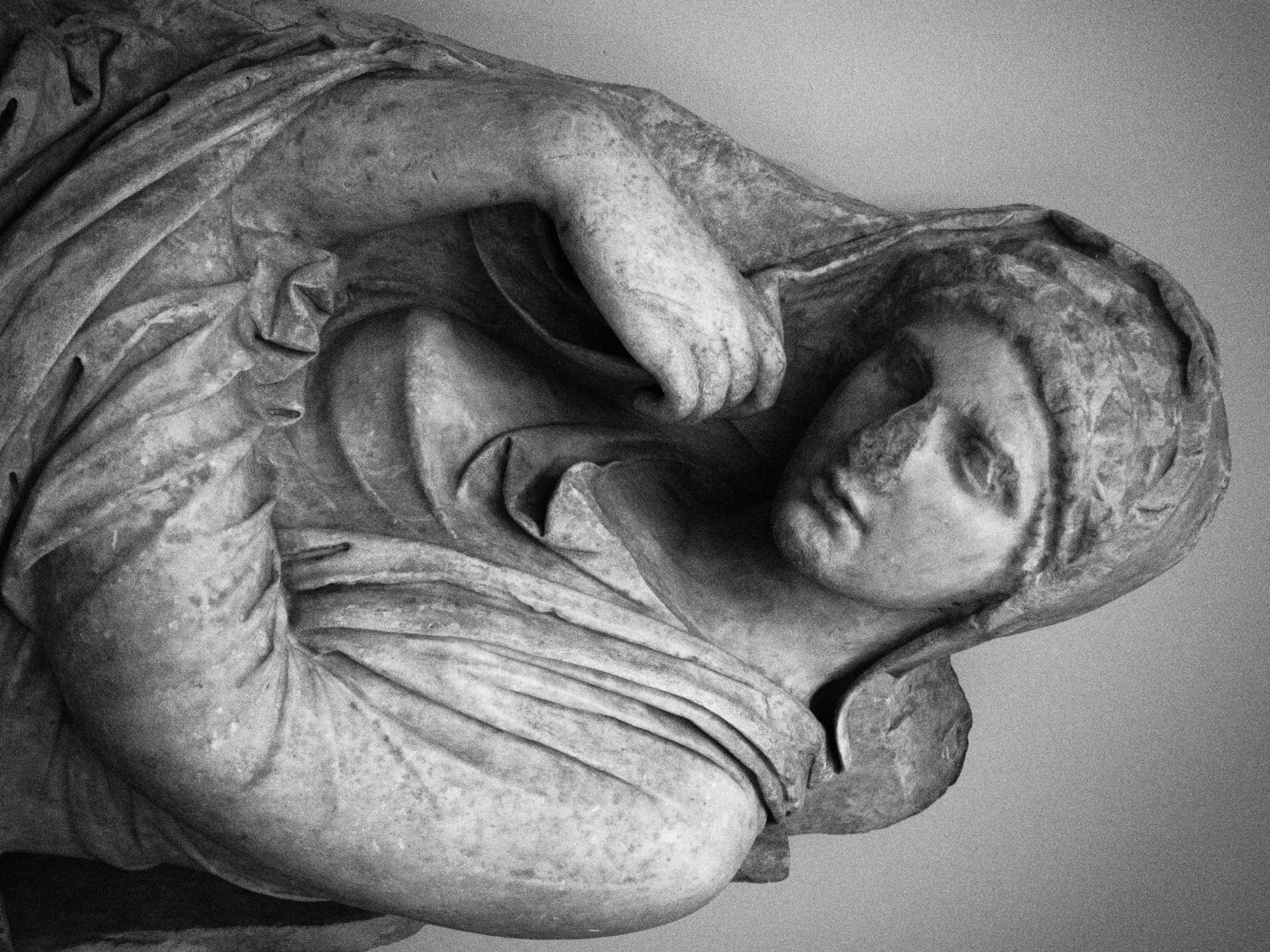 Out of all the Classic treasures in New York, this grave stele is perhaps the most human. Carved virtually in the round, sublime is the only word that readily comes to mind to describe it. Who was this woman? She must have been well respected and loved to deserve a work of this magnitude. Whoever it was who solicited this work made sure to find a master to complete the task. Her grace is made material with a slight bend of the wrist and her modesty is kept in tact under her shawl. She leans forward not to talk, but to listen. This rock beckons you closer. She must have been a kind woman - stately in her matriarchy.