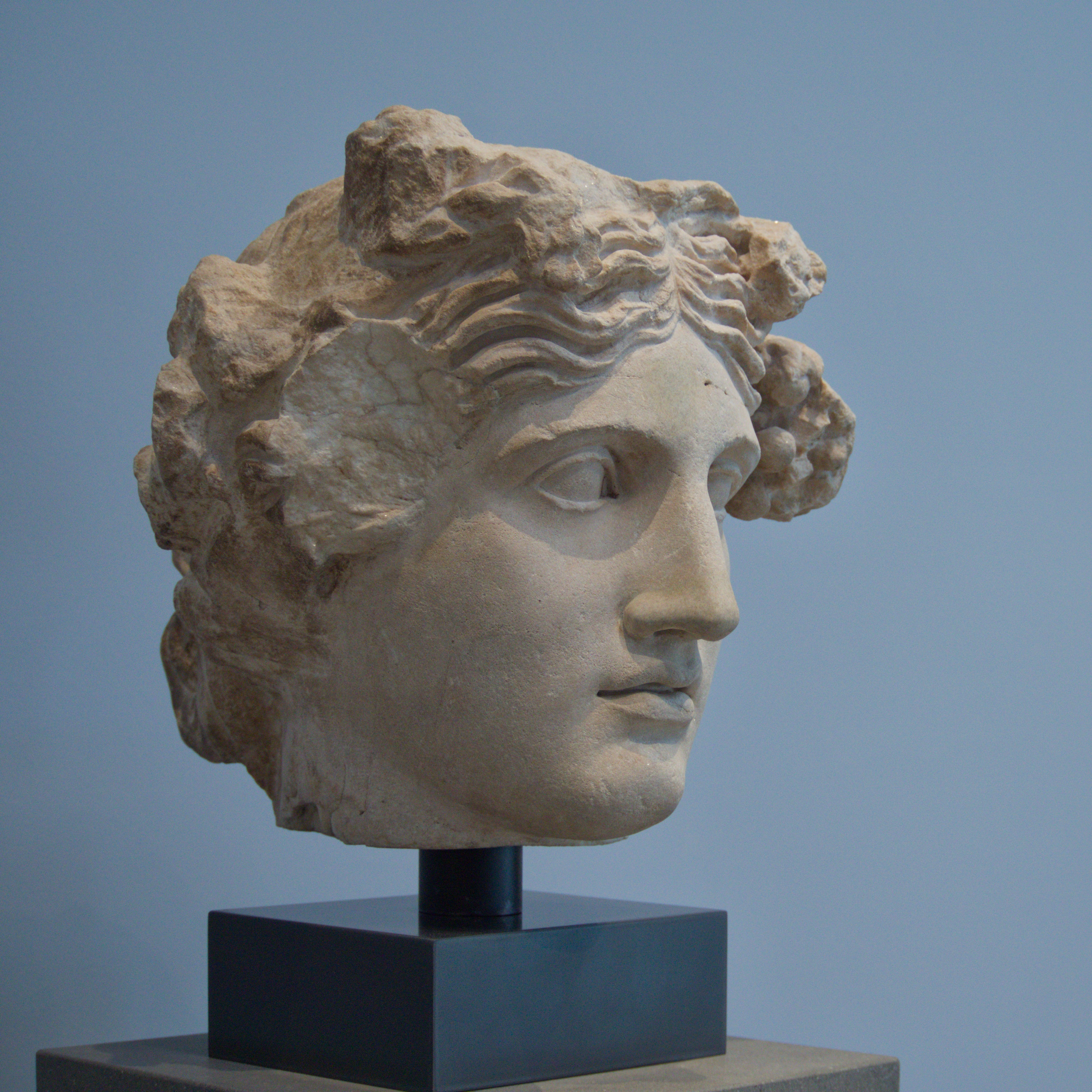 Roman copy of a Greek head. The fillet around his forehead tells of the boys athletic victories.