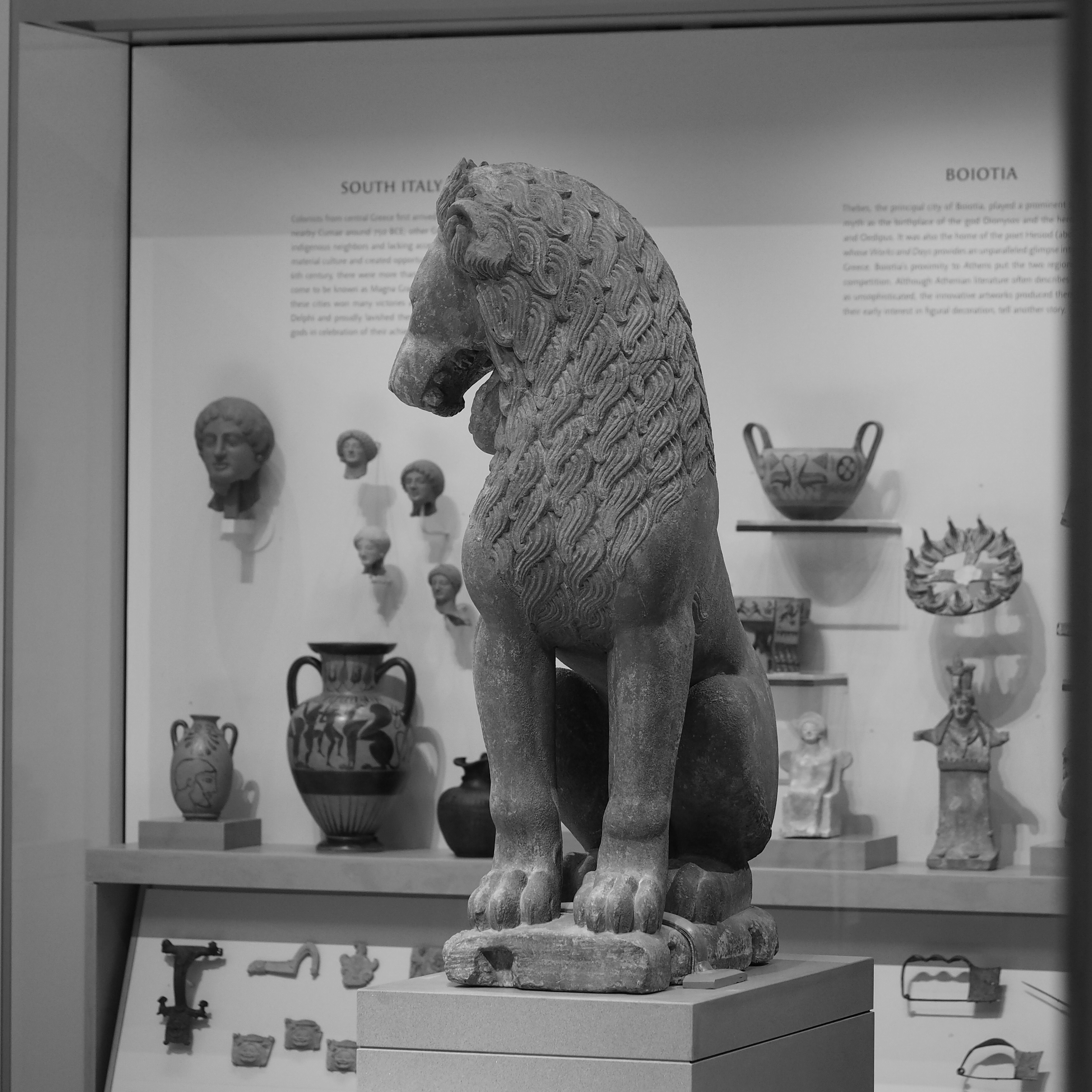 The lion was a favorite subject of the Greek stone carver. In relief or in the round, relaxed or in motion, playful or menacing, the Greek never tired of sculpting these beasts.